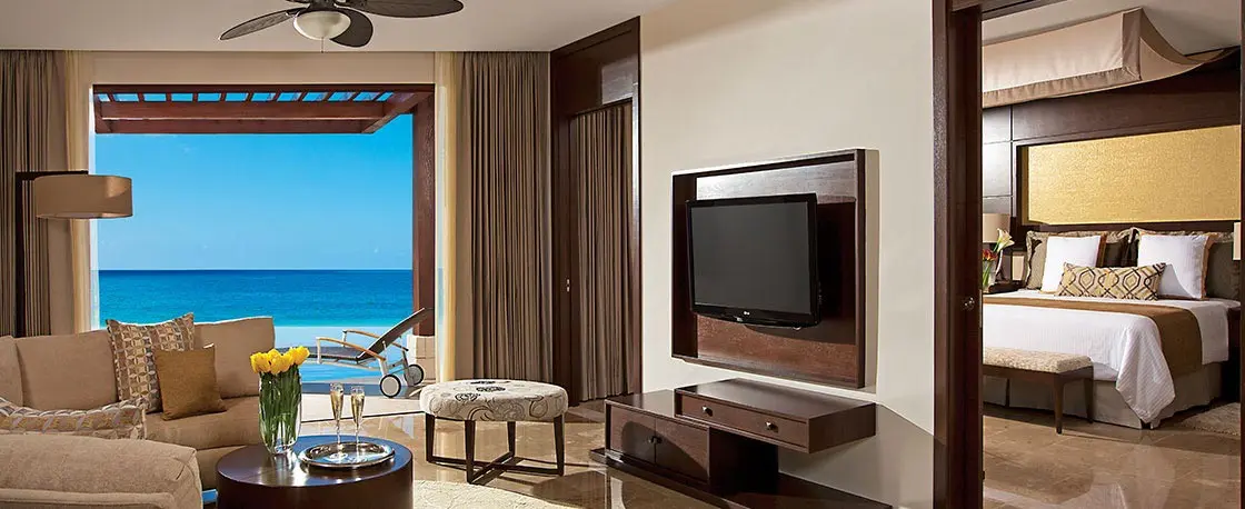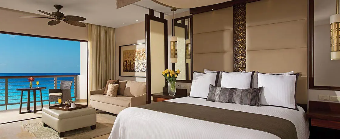 Para Secrets Playa Mujeres desarrollamos el mobiliario de 424 habitaciones y suites, priorizando un estilo sofisticado y orientado a parejas. La propuesta combinó líneas limpias, colores neutros y materiales premium, logrando ambientes íntimos, modernos y duraderos.